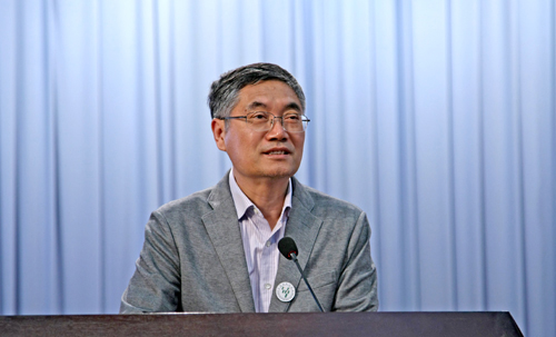 我校校长王晓纯在成立大会上致词,并对苹果园教育集团的成立表示祝贺。
